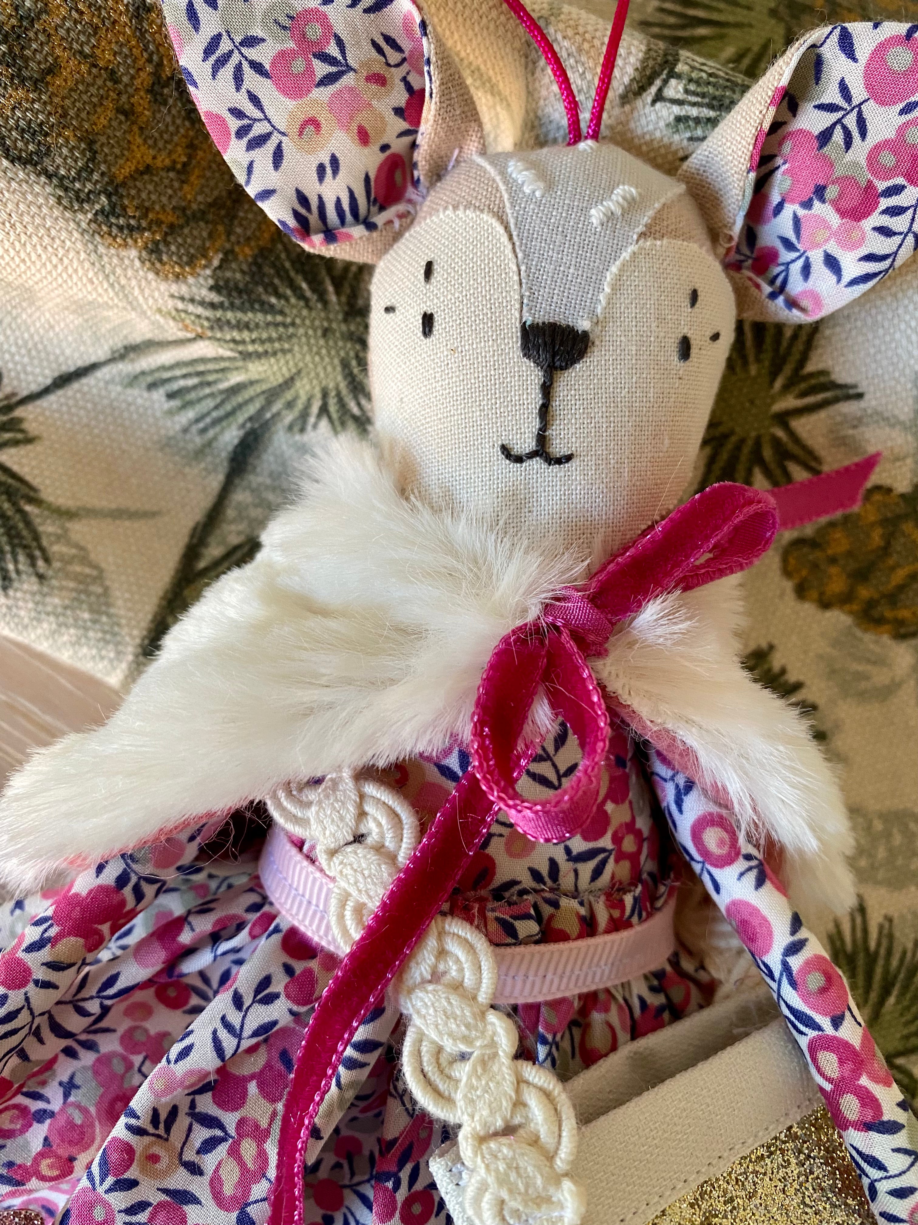 This Wish upon a Star TillyBob decoration is a perfect festive addition and I’m thrilled to be back making again! Following the hugely popular Angel decoration, these beautiful friends each bring their own little star to wish upon as well as a bag to keep the wish safe. Each decoration measures approx 20cm tall (excluding the ears!), is complete with a set of handmade accessories. Each one is unique, completely handmade by myself, and wears a Liberty Print skirt, cape and bag and holds their magic star.