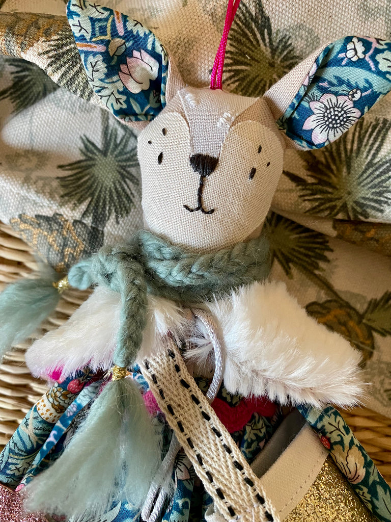 This Wish upon a Star TillyBob decoration is a perfect festive addition and I’m thrilled to be back making again! Following the hugely popular Angel decoration, these beautiful friends each bring their own little star to wish upon as well as a bag to keep the wish safe. Each decoration measures approx 20cm tall (excluding the ears!), is complete with a set of handmade accessories. Each one is unique, completely handmade by myself, and wears a Liberty Print skirt, cape and bag and holds their magic star.